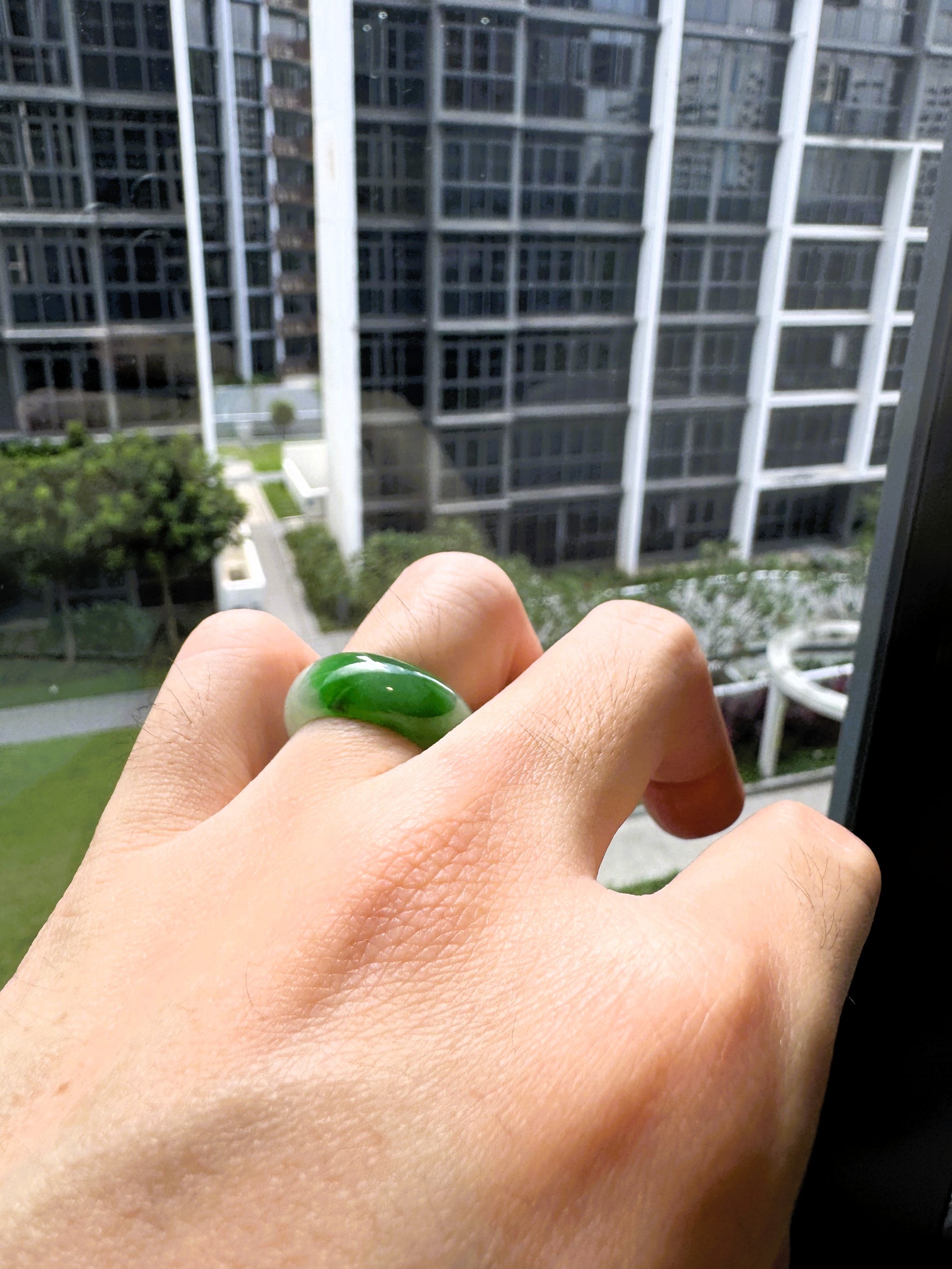 冰翡翠戒圈 (带一抹绿)